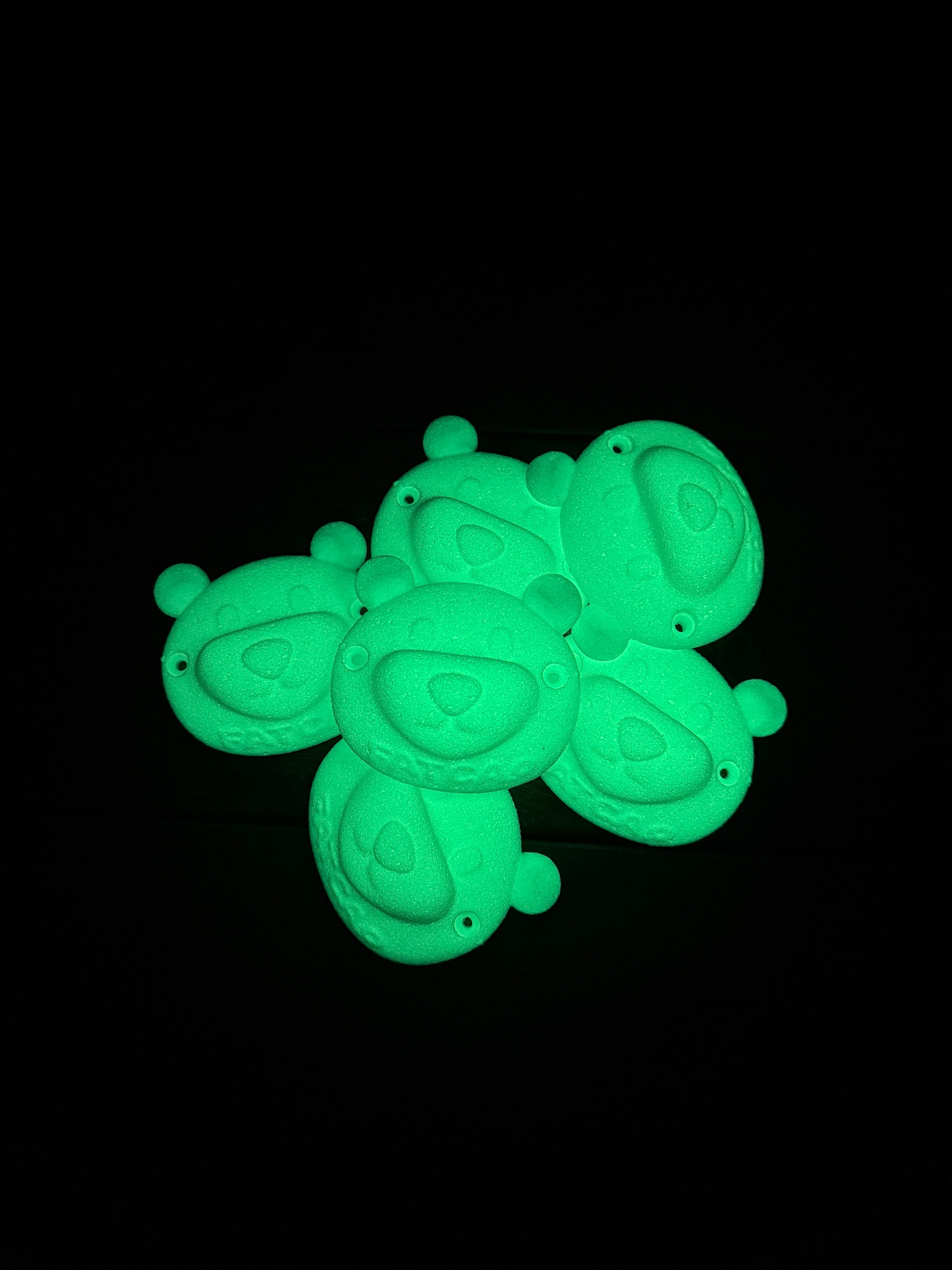 フィンガーボード用に2個セットのクマ型ホールドです。蓄光で光を貯めて暗いところで光ります!